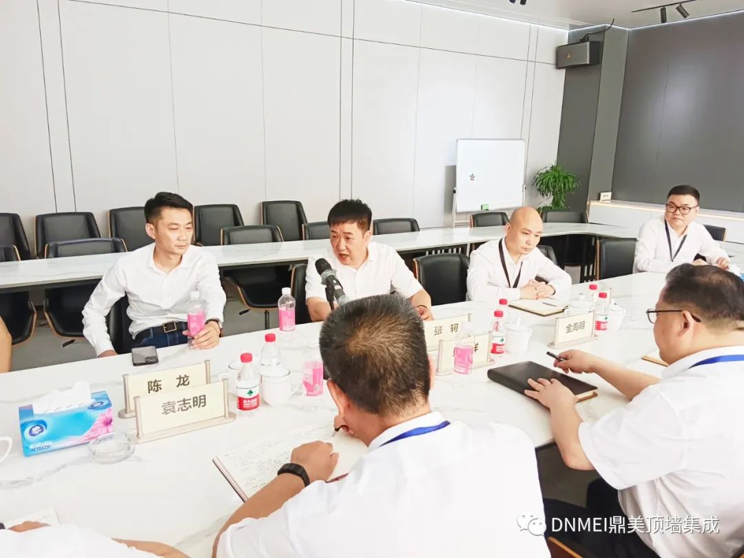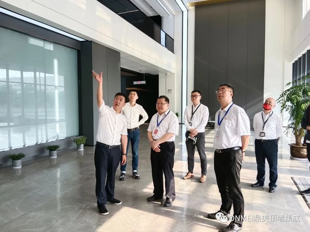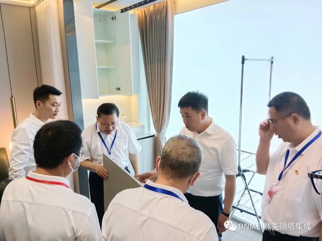 首先,张轲带领来宾参观了鼎美品牌研发中心,并结合中心大厅生动形象地说明了鼎美产品在公装和商装上的应用。随后来到鼎美最新展厅,详细讲解了鼎美从2002年生产单一的卫生间浴霸产品到集成吊顶到目前的顶墙集成(鼎美是装配式吊顶和墙面集成行业和技术的发明者)再到未来的一站式装配式装修的实现,一路走来历经风雨,克服了许多困难。在企业使命和责任担当的驱使下鼎美不断创新发展,今年在无胶大板和木泥蜂巢板的基础上,推出了行业里程碑式的产品——卡扣式无胶大板、铝岩板和铝蜂窝柜体板,在传统家装基础上实现了公装和商装领域新的赛道跃升。