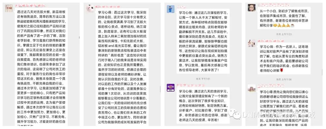 参与培训的鼎美家人们对本次教学非常认可,大家都以清晰可见的速度渐渐从一个新手小白成长为一个销售精英。培训会还有7天,精彩还在继续,相信大家会有更多收获!
