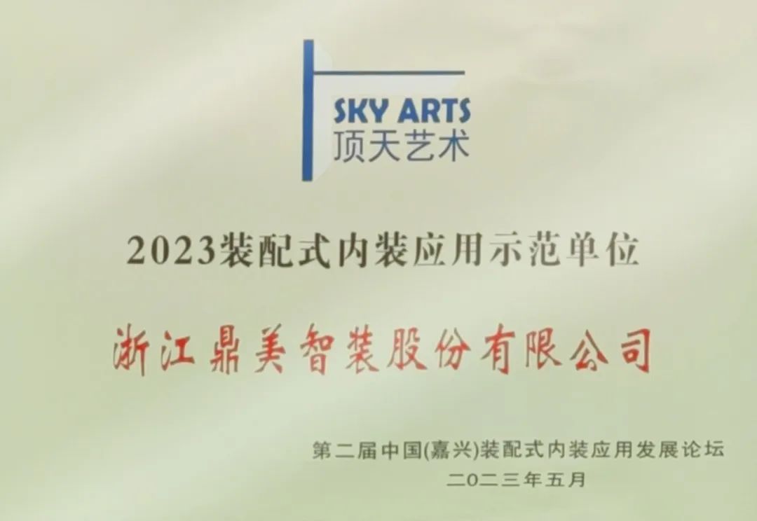 2023年,鼎美被授予嘉兴市第一批“智能建造示范基地”、“浙江省建筑装饰行业装配化装修示范企业”、“2023装配式内装应用示范单位”等荣誉,并承担装配化内装试点企业实际落地的任务。