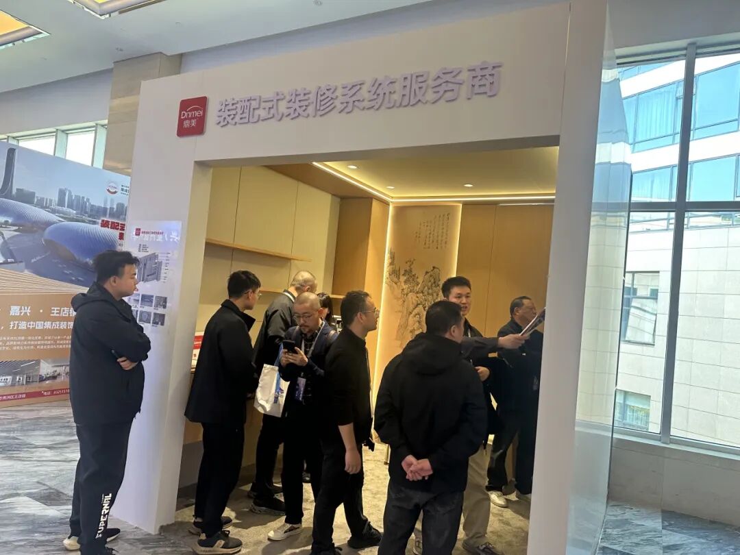 年会现场,鼎美打造的9㎡装配式装修展馆,成为了全场 “流量高地”—— 专家学者、设计师们纷纷驻足,沉浸式感受装配式装修的 “效率与美学”: