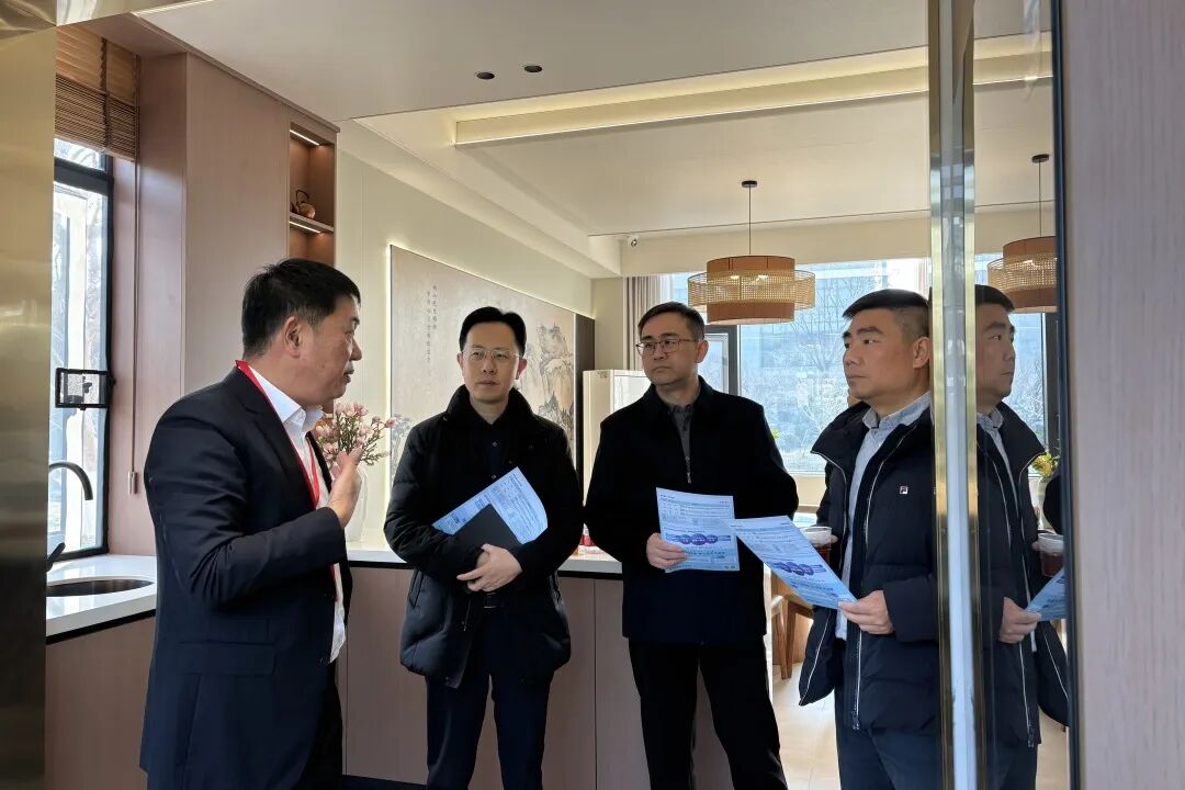 鼎美副总经理王晓光陪同参观并深度讲解,吴毅峰处长一行了解了鼎美在装配式装修领域的技术创新成果与落地应用成效,对鼎美装配式装修给予了高度认可。